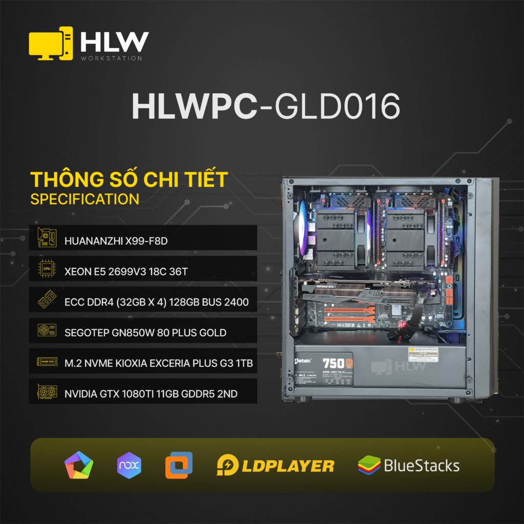 GLD008 GIẢ LẬP GAMING DUAL CPU (CPU XEON E5 2676V3 x RAM 64GB BUS 1600 x SSD 512GB)